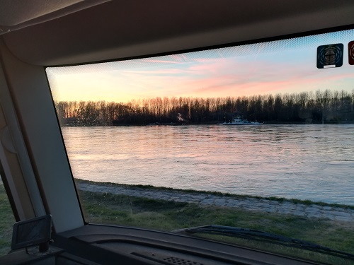 With a few new items and a fully automatic satelitte system we head off to the river for a quiet night beside the rushing water and the occassional barge on it's way to and from Basel.