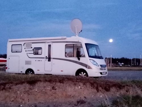 for some work on Ruth the van. We spend a night in the grounds of the dealership with a nearly full moon.