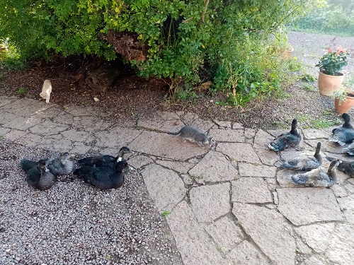These villages are strip developments, usually with a water channel on either side and individual access over a little bridge for every house. I've seen this before in Slovakia. There are swifts most places and the occassional stork as well as heron.