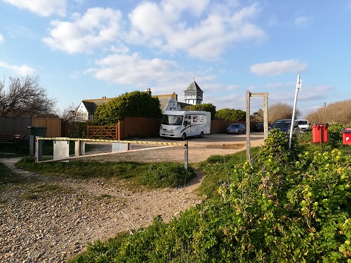 Free parking beside the beach with water and grey water dump. |