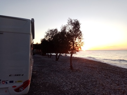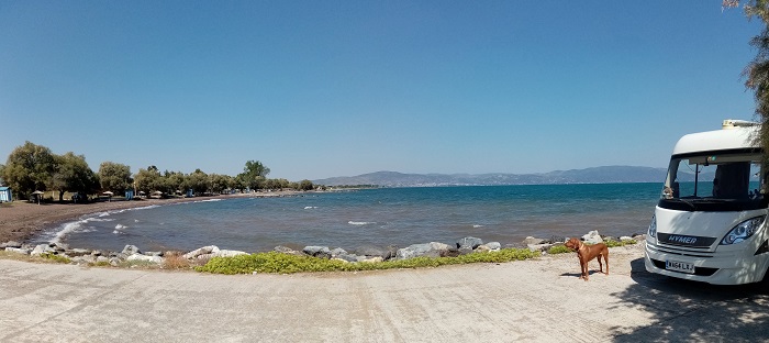 | Agean Beach Parking | Big, dry carpark, nice beach, showers | 038.33678 | 023.76354 |