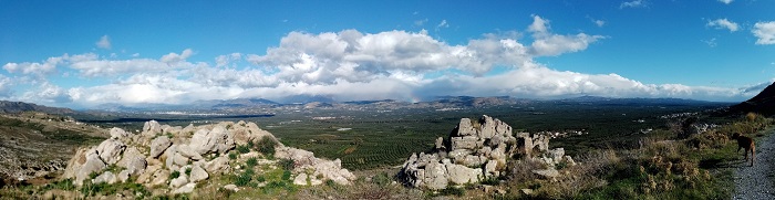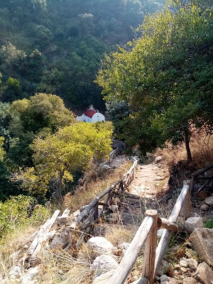 The sun is still shinning and we make our way up the valley and over the pass to Lentas.