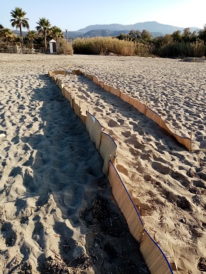 The beach is a turle nesting area, circa 170 nests looked after by an NGO - Archelon.