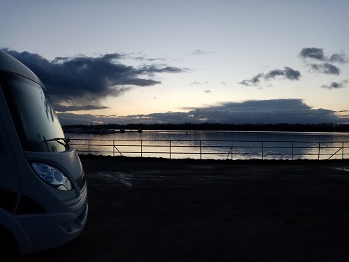 2-JAN and back to park outside Camping Elizabeth (closed for January and February) as the rain arrives in sheets.