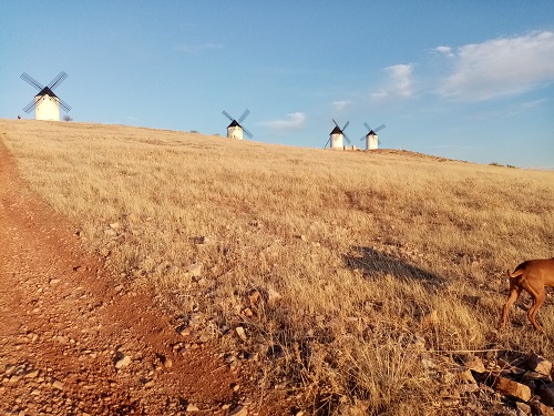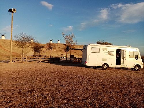 From there we take the A23 and the N340 southwards, leaving Aragon and driving towards Extramadura. From the A5 we see a few windmills on a hill, which we drive to and also spend the night.