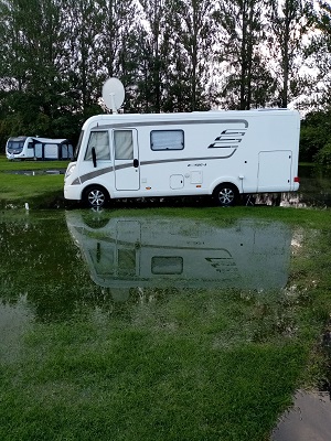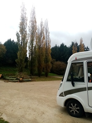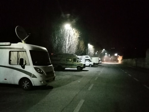 Large ex-field populated with about 90 European motorhomes. All services, though an upgrade would make a lot of sense. |