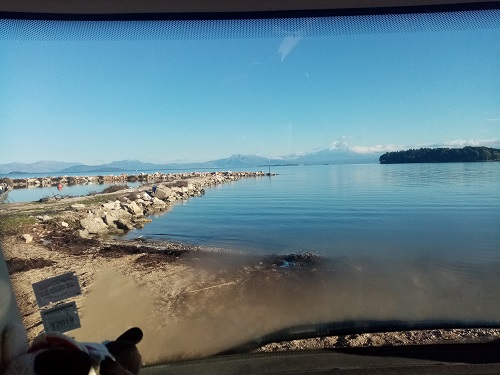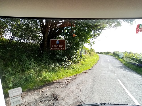 It has been a long drive, so we find a place to park just the other side of the border.