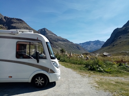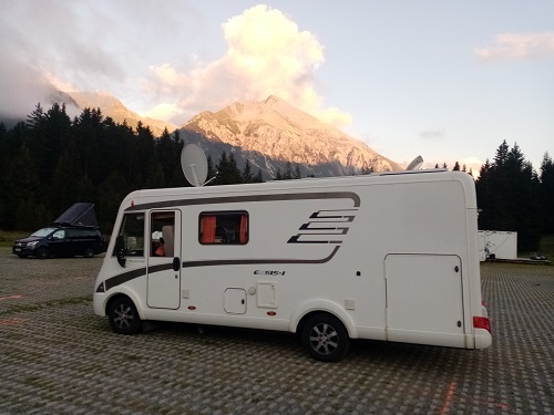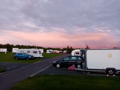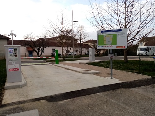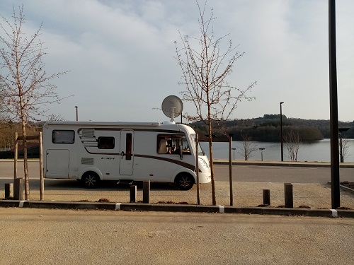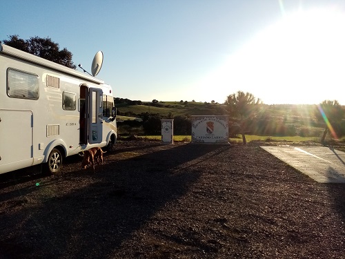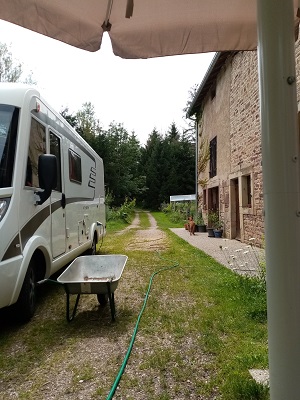 Large ex-field populated with about 90 European motorhomes. All services, though an upgrade would make a lot of sense.