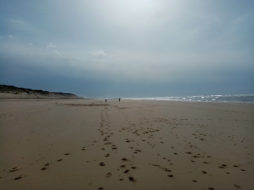 After a very early walk on the beach again, still with crashing waves we head northwards. But, not finding a nice place for the night before Archachon we bypass Bordeaux and end up in a Camping-car Park in Libourne.
