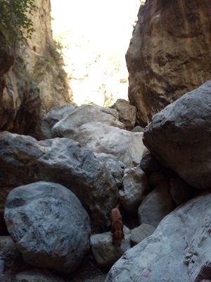 On leaving we attempt to walk up the Sarakinas Gorge, but after a short distance the boulders are simply too big and the way is blocked.