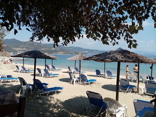We move to a small village Ammos a bit farther down the coast for a night of quiet under the stars, next to the lapping waves.