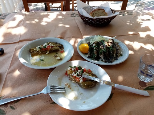 The new motorway southwards is very good, but expensive. We take a side trip to Volos, which is a mad mess of traffic before then deciding to take a back road where we fund a lovely place to stop for he night.