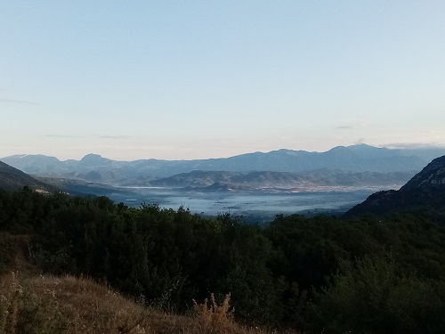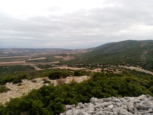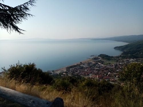 We conquered the local hilltop. The next morning it's through Lamia to Thermopyle for 15 minutes in a stinky pool, then up the winding mountain road to the next wide valley and a pleasant drive down to Thiva before an amazing back road to the coast for the night.