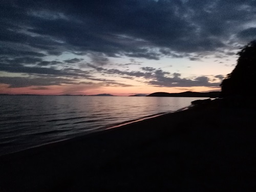 We walk around the bay because a local triathlon is in progress, such a variety of people puffing and panting. As a storm arrives we head off and spend the night in a small carpark.