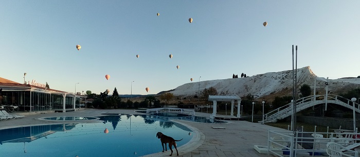 Pamukkale Parking Off a dusty road with a swimming pool and lekkie. 037.91944 029.11741